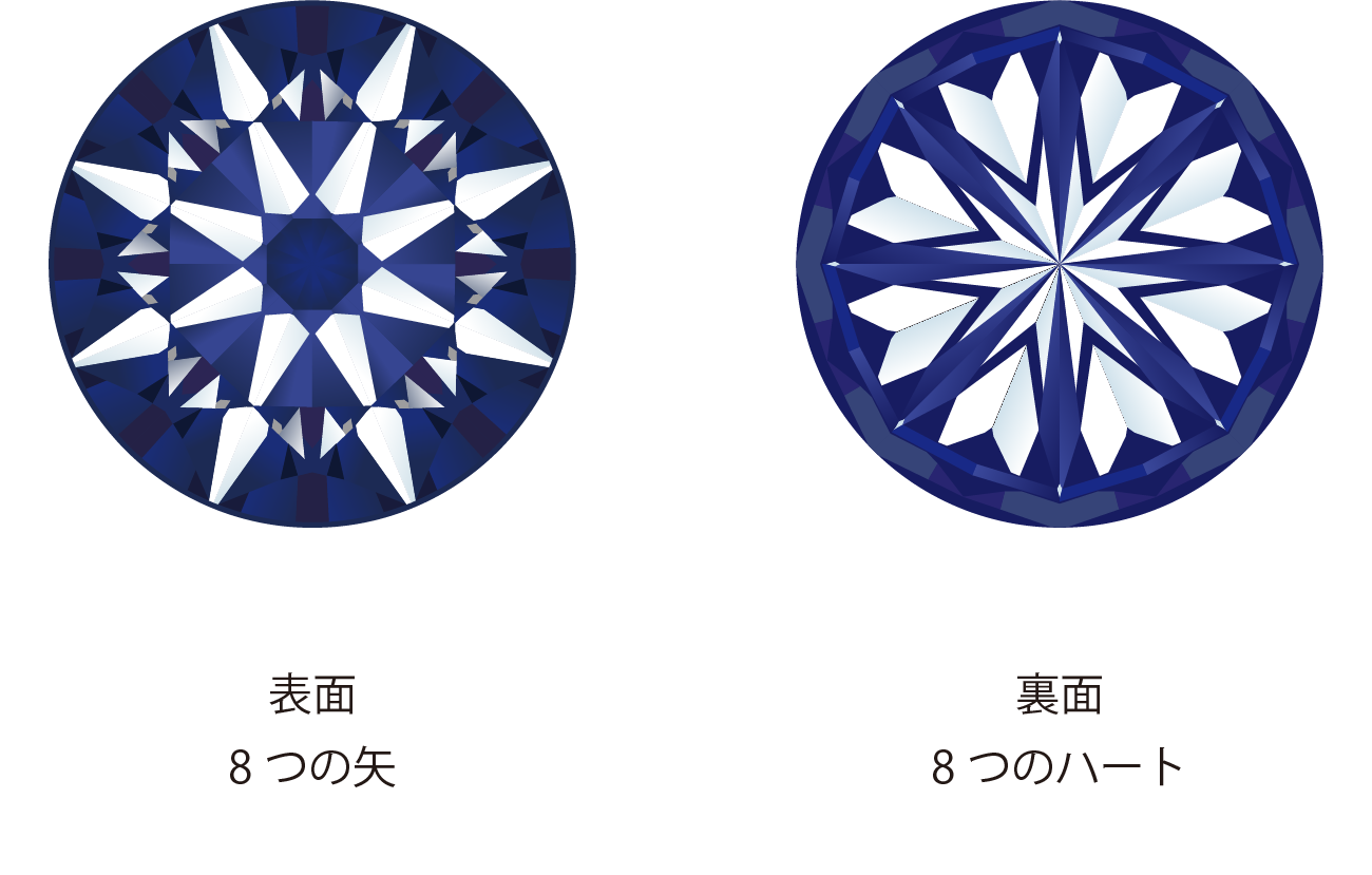 H&Cとはダイヤモンドの輝きを最も引き出すといわれているラウンドブリリアントカットのひとつです。