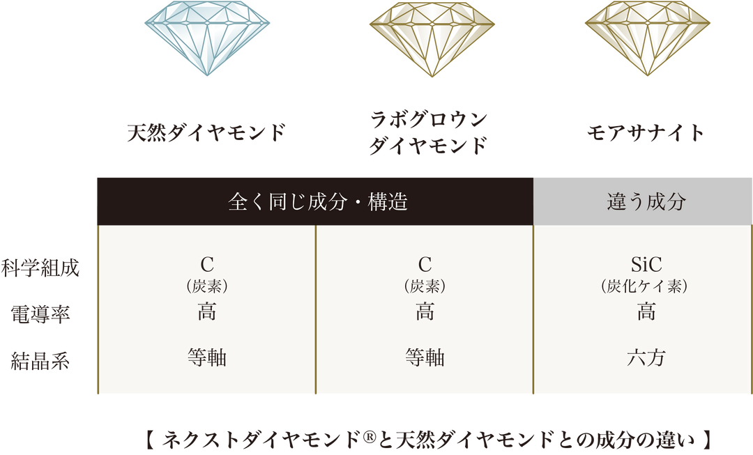 天然ダイヤモンドと同じ成分・構造を持つ、本物のダイヤモンド