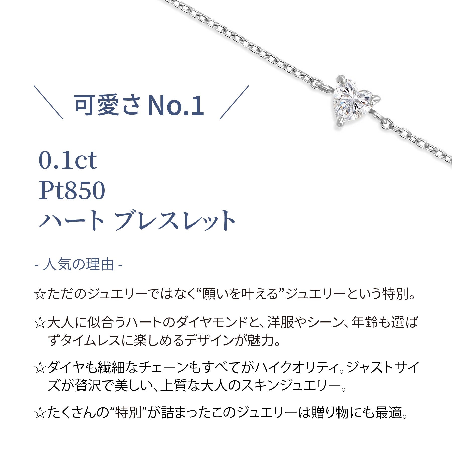 ラボグロウンダイヤモンド 0.1ct ハート ソリティア ブレスレット プラチナ